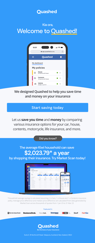 Overall in 2023 Quashed was able to help Kiwis save an average of $1,150 a year on their insurance.